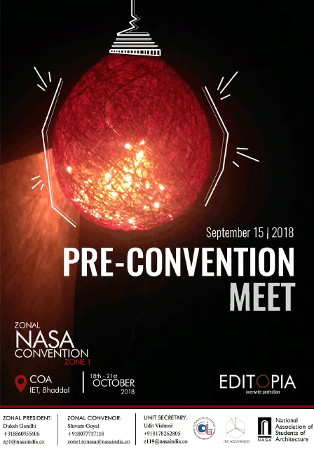 HomeeventsPre NASA Convention Meet Pre NASA Convention Meet Leave a Comment / By Admin / 08/09/2018 Pre-Convention Meeting of Zone 1 will take place on 15th September 2018 at College of Architecture – IET Bhaddal, Rupnagar.